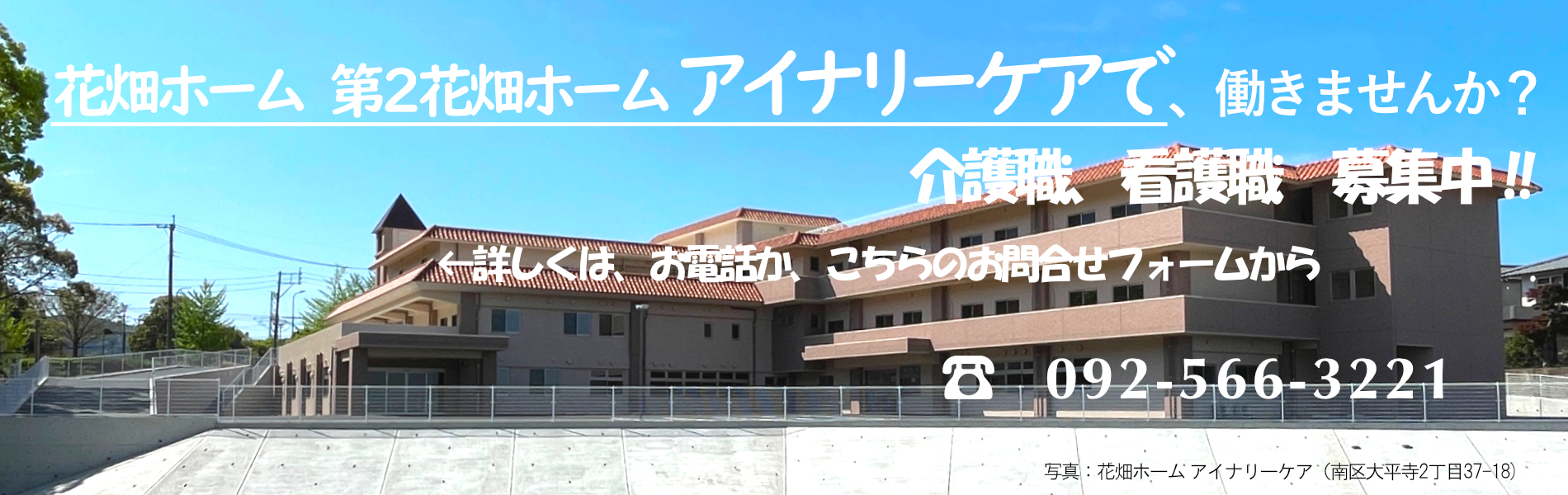 朝夕は小鳥のさえずりが聞こえ、四季折々の花が咲き、自然の中で穏やかに気持ちよくお過ごしいただけます。また、花畑ホームアイナリーケアは花畑園芸公園、第2花畑ホーム アイナリーケアはABYBNF(旧油山牧場(もーもーらんど)・油山市民の森)、という市民の憩いの場ほど近い距離にあります。